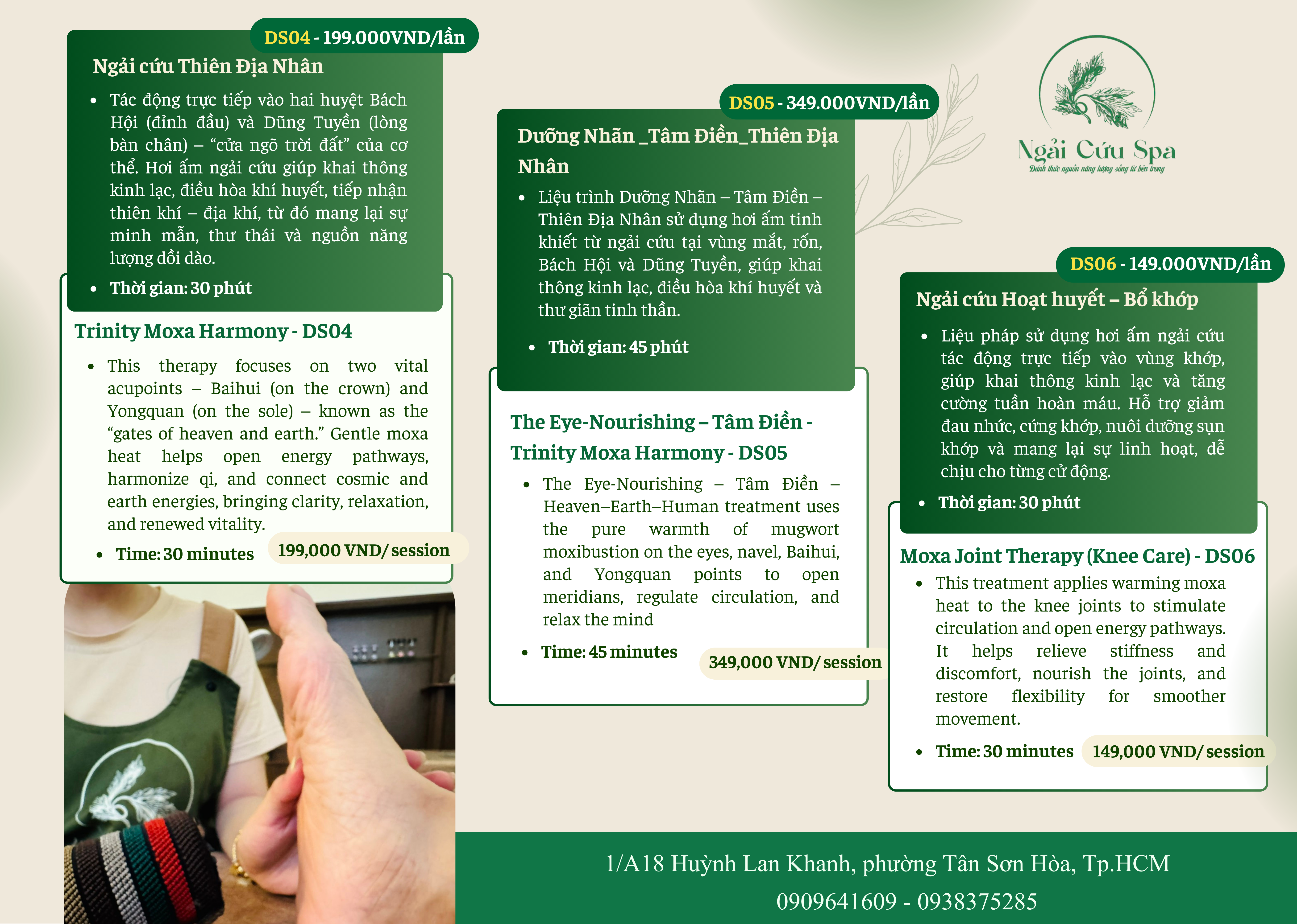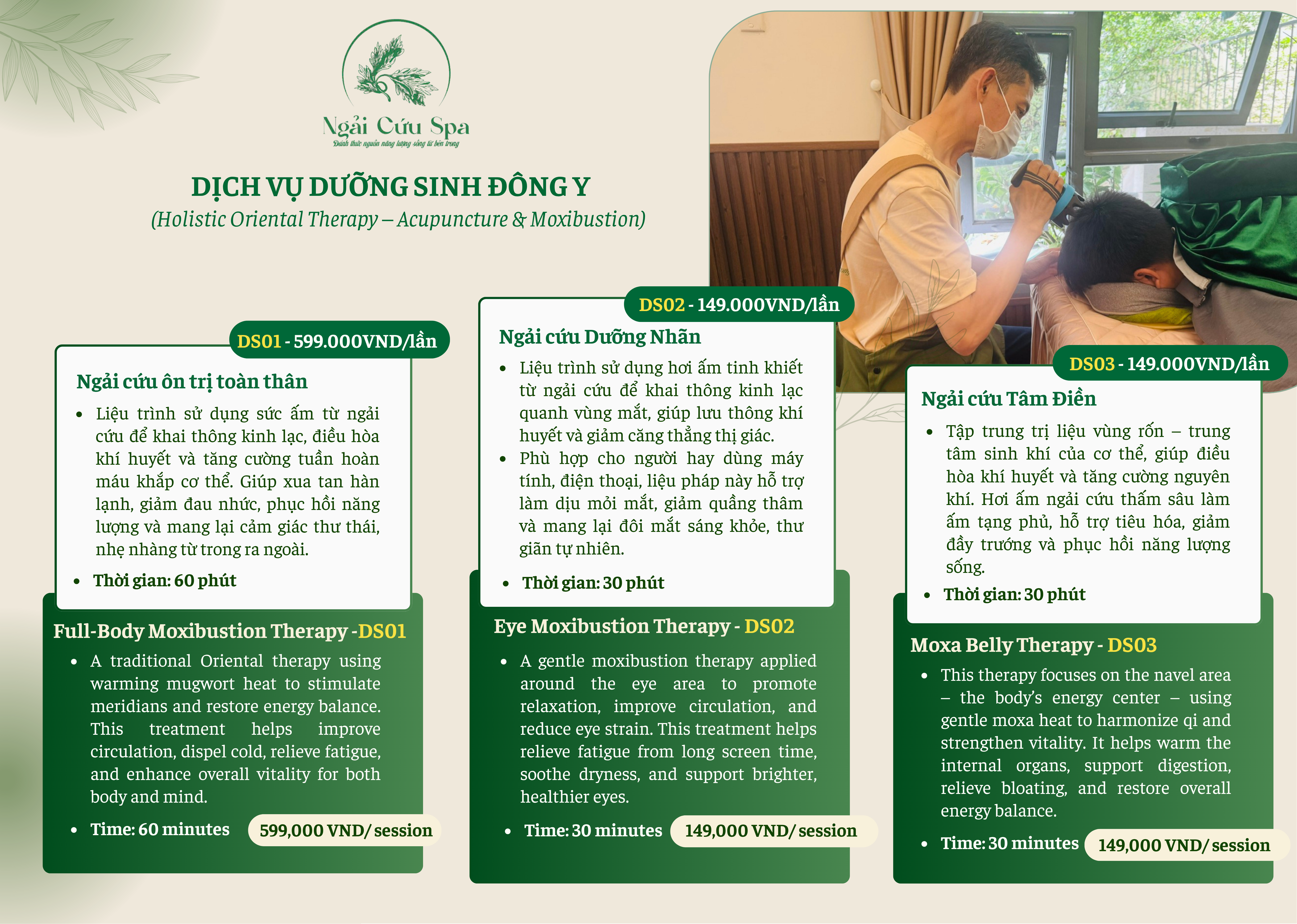 Ngải Cứu Spa mang đến hành trình chữa lành tự nhiên bằng các liệu pháp Đông y an toàn, không xâm lấn. Kết hợp tinh hoa y học cổ truyền và chăm sóc hiện đại, chúng tôi khơi dậy khả năng tự chữa lành, cân bằng thân – tâm – sắc, giúp bạn khỏe từ khí huyết, rạng rỡ từ thần sắc.